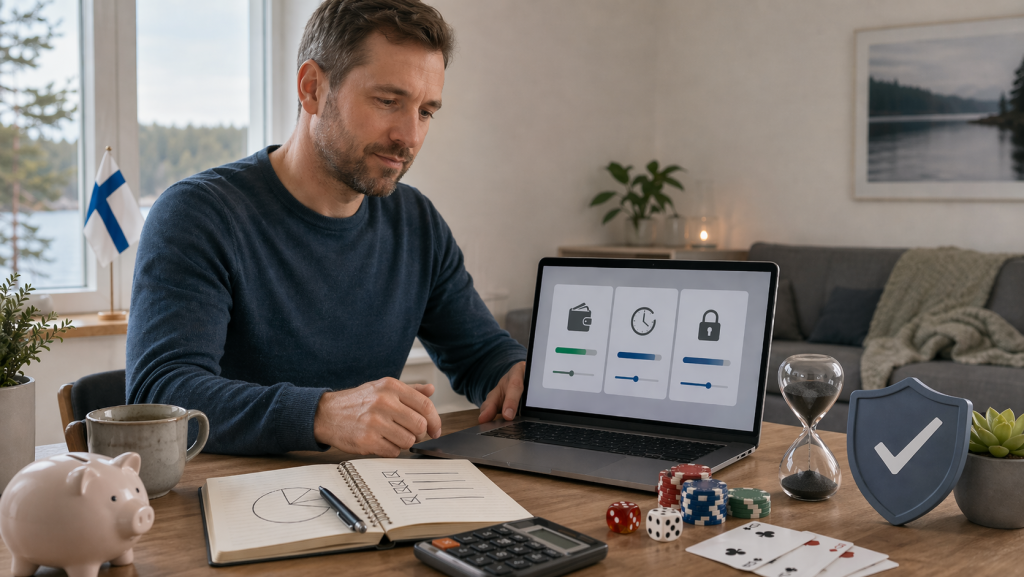 Monilla pelisivustoilla voi asettaa talletusrajoja, tappiorajoja, istuntomuistutuksia ja määräaikaisia pelikieltoja. Näitä kannattaa käyttää ennaltaehkäisevästi, ei vasta ongelmatilanteessa.